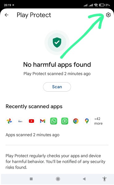 - Gambar diatas adalah tampilan halaman Play Protect.